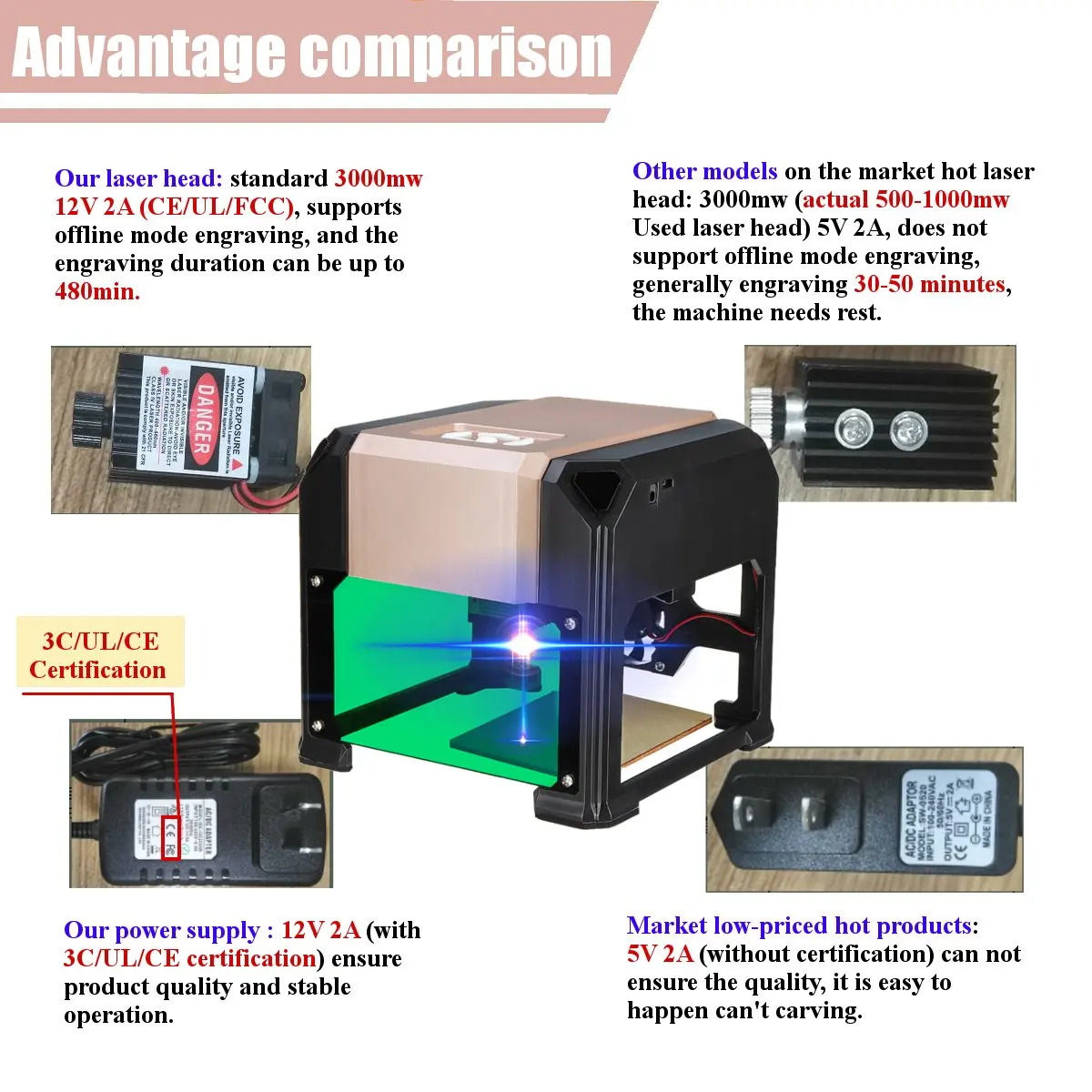 3000mW CNC Laser Engraver Mini DIY Home Desktop Logo Mark Printer Cutter Laser Engraving Machine Woodworking Wood Router 80x80mm :Click Here
